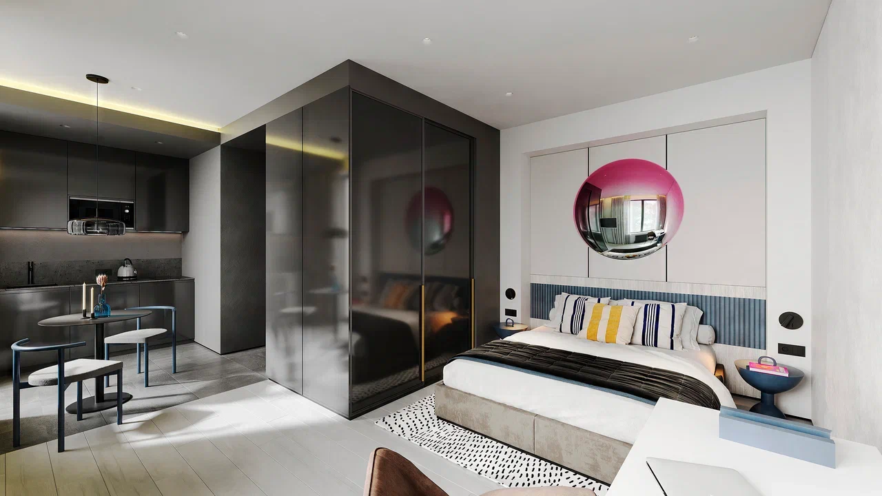 На первом этаже компания создаст гранд-лобби, где центральным арт-объектом станет зеркальный биокамин. В состав инфраструктуры апарт-отеля будут также входить коворкинг, ресторан, бар-остров, фитнес-клуб, переговорные, конференц-зал и wi-fi на всей территории объекта.