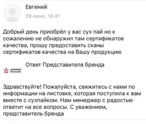 И еще один яркий пример контрольной закупки сухпайка, на котором яркими шрифтом написано «Не для продажи»