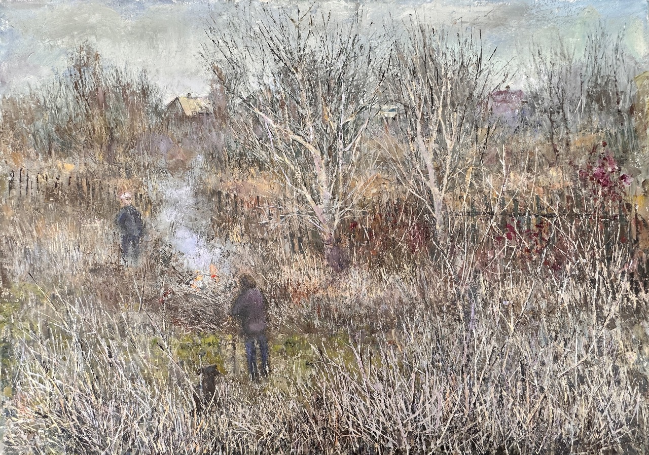 Внимание посетителей привлекала картина «Весенние хлопоты» художницы Софии Гетман из Таганрога. Ей с удивительным мастерством удалось воссоздать только начинающее пробуждаться состояние природы, созвучное с внутренним чувством радости от первых тёплых деньков. Художница раскрывает простой всем знакомый сюжет: выходной день, жители выбираются на дачи, ловят лицами долгожданные лучи солнца. И отдаются весенним хлопотам – побелке деревьев, подготовке грядок и поиску подснежников близ журчащих ручейков. Пространство оживает за счёт узоров ветвей и нюансов света, создавая собирательный образ весенних шалостей и суматохи. В номинации «Графика» интерес вызывает работа Игоря Проценко из Наро-Фоминска. Его работа иллюстрирует интересный и подчас тяжёлый созидательный труд художника-монументалиста. В основу сюжета лёг процесс исполнения в технике сграффито росписи южного фасада храма Воскресения деревни Хребтово Сергиево-Посадского района Московской области.