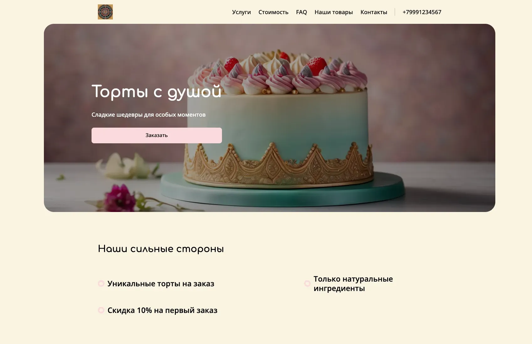 Пример генерации лендинга для кондитерской, специализирующейся на изготовлении тортов на заказ.