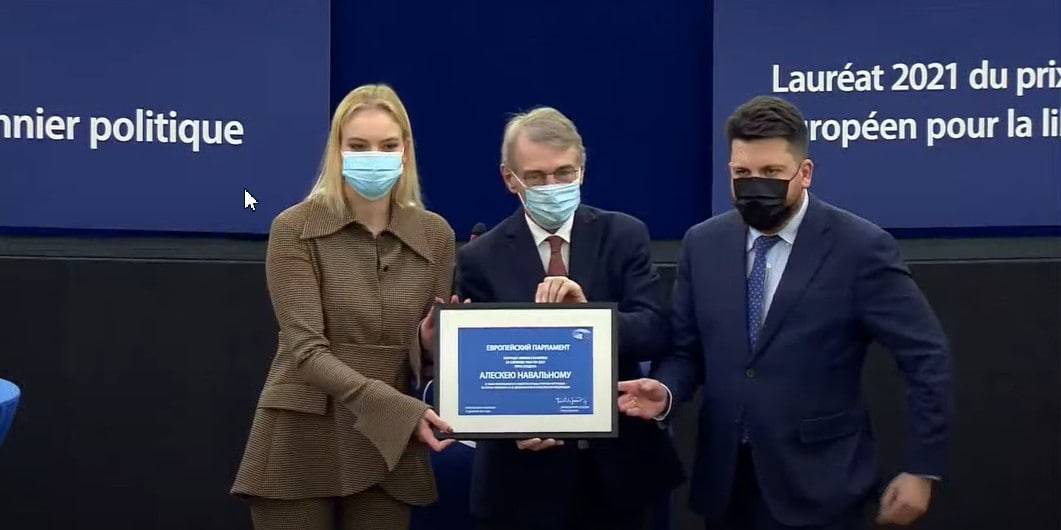 Дарья Навальная получила премию Сахарова «За свободу мысли», которую в 2021 году присудили ее отцу. Выступая с ответной речью вместе с соратником Навального Леонидом Волковым, они выразили благодарность за награду и призвали к оказанию еще большей поддержки, помимо «выражения соучастия».