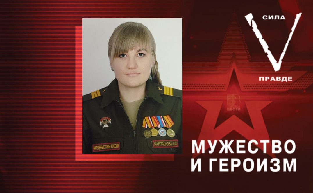 Медсестра сержант Юлия Карташова с начала специальной военной операции оказывает медицинскую помощь военнослужащим с ранениями разной степени тяжести. Она извлекает осколки из ран и создает условия для быстрого их заживления. За это время благодаря ей в военно-полевых госпиталях было выполнено 135 хирургических операций.