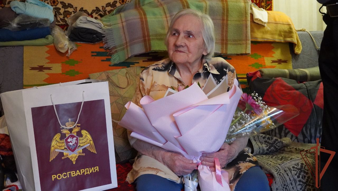 Офицеры Росгвардии в Саратове поздравили ветерана войск НКВД Кривоногову со 100-летием