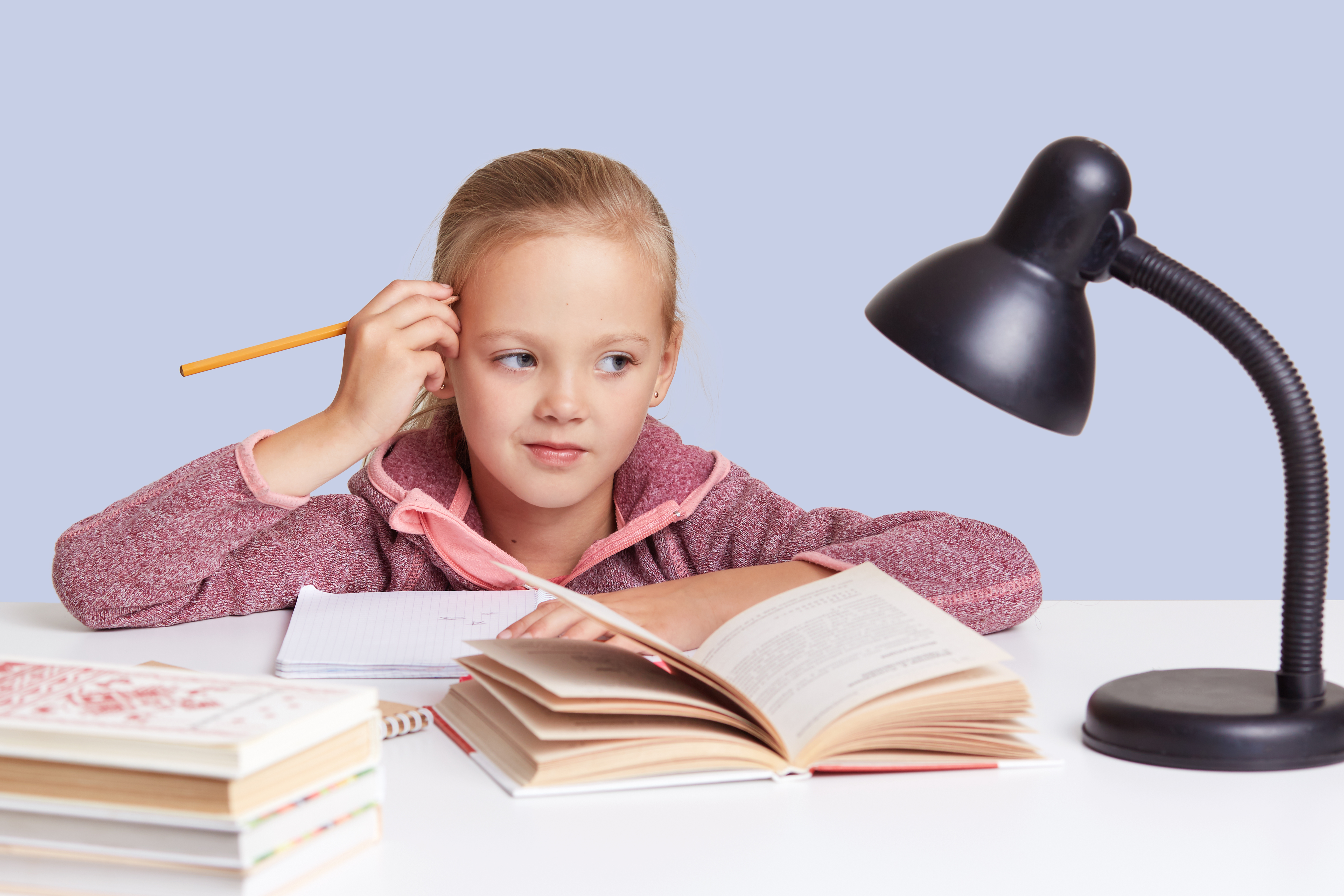 Настольная лампа также должна располагаться со стороны рабочей руки. Важно, чтобы у лампы был абажур, иначе яркий свет может испортить зрение. Освещения должно покрывать всю рабочую площадь. Свет должен быть умеренным, не тусклым и не слепящим, чтобы не создавать дополнительную нагрузку для глаз ребенка.