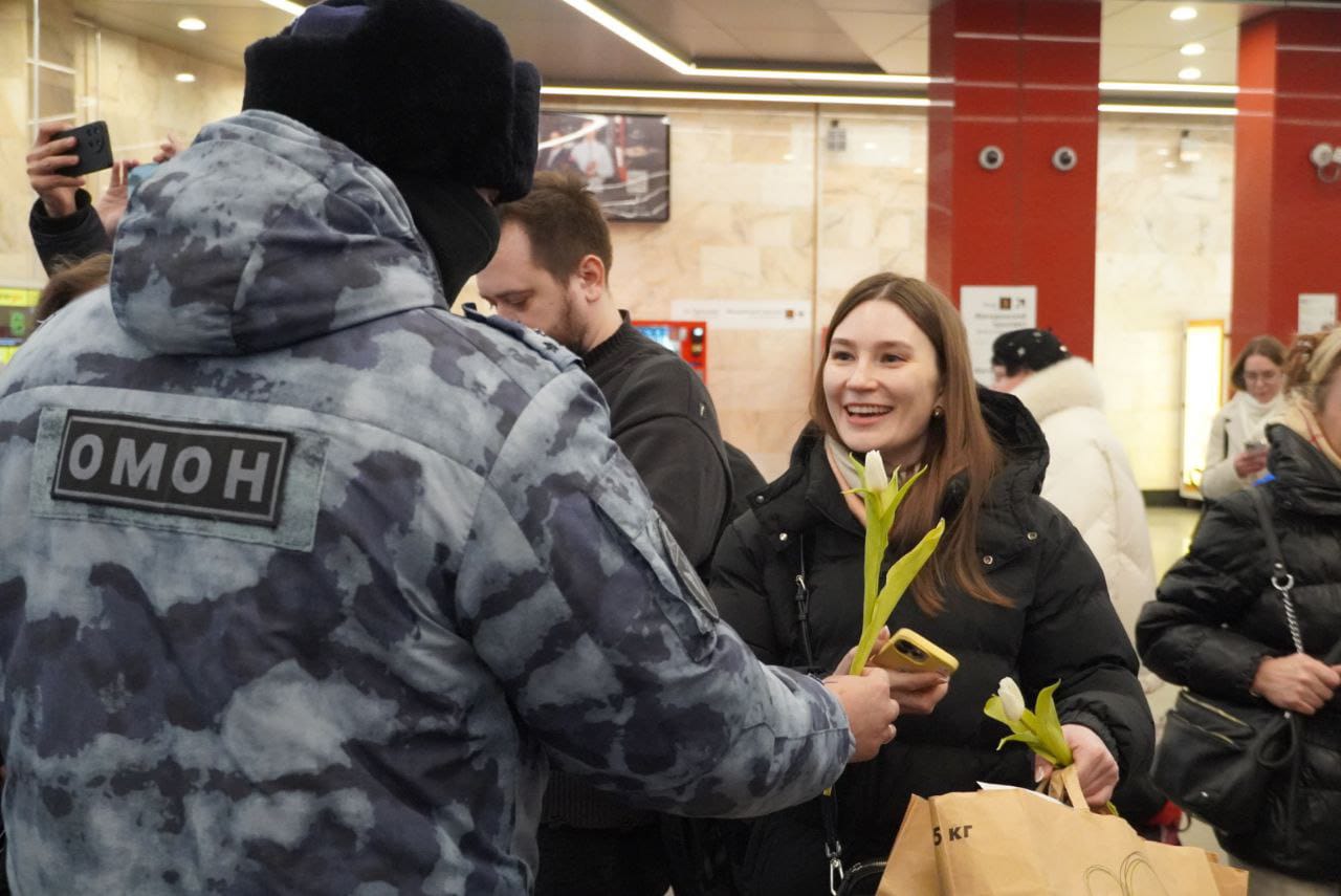 В Международный женский день военные музыканты Росгвардии выступили в Московском метрополитене