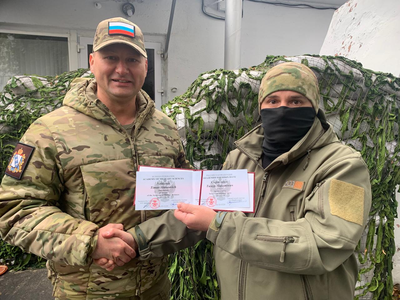 Заместителю командира бригады «Барс-Курск» Тимуру Сыртланову вручили диплом профессора Академии военных наук