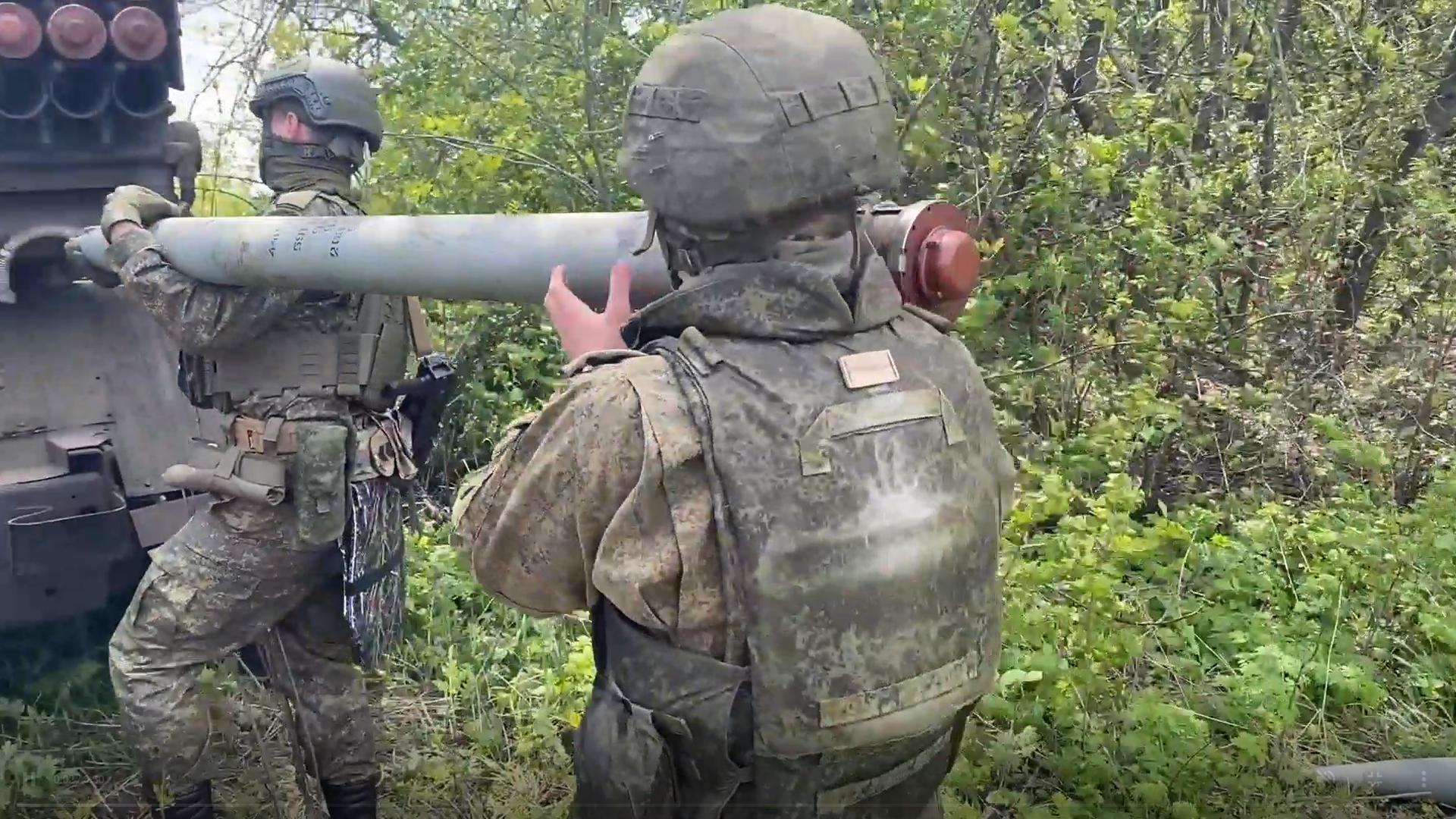 На автомобиле демонтирован грузовой отсек. На его месте установлен каркас с вращающимся блоком направляющих. Размер РЗСО говорит о том, что он совместим с неуправляемыми авиационными ракетами С-8 с калибром 80 миллиметров.