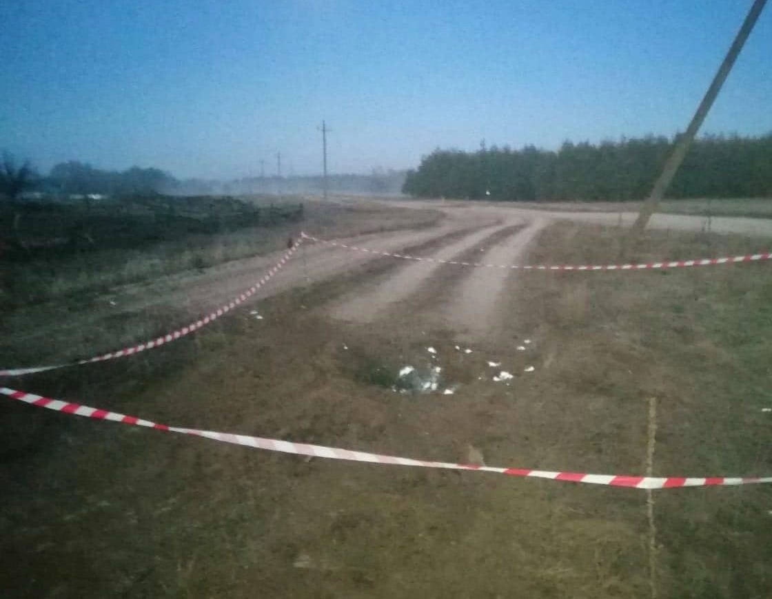 На фото видно, что место происшествия уже ограждено. Снаряд разорвался на проселочной дороге. Сообщается, что на месте работают специалисты экстренных служб и силовых ведомств.