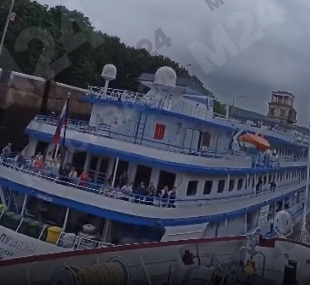 В Подмосковье произошло столкновение двух пассажирских теплоходов, «Георгий Жуков» и «Пушкин», и момент инцидента был запечатлен на видео, которое опубликовал телеканал «Москва 24» в Telegram.