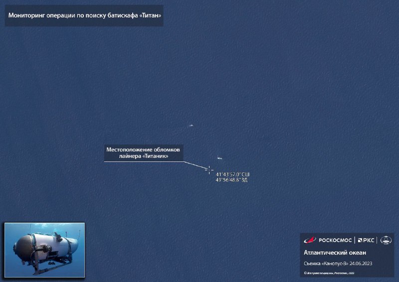Роскосмос показал снимок места гибели батискафа «Титан» из космоса