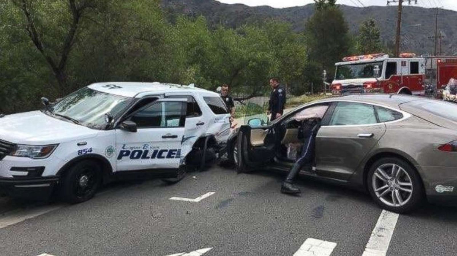 Tesla на автопилоте протаранила полицейский автомобиль
