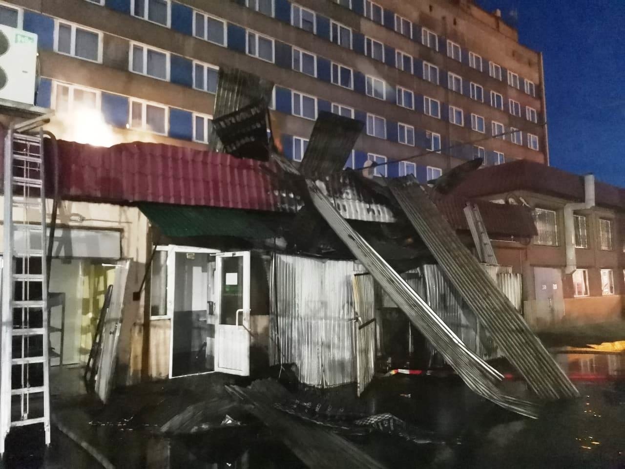 «В 4:02 (23:02 мск) открытое горение было ликвидировано. В 7:44 (2:44 мск) ликвидированы последствия пожара. В результате огнем повреждена кровля подсобного помещения супермаркета на площади 140 кв. м, а также обшивка и оконные проемы», — сказано в сообщении.