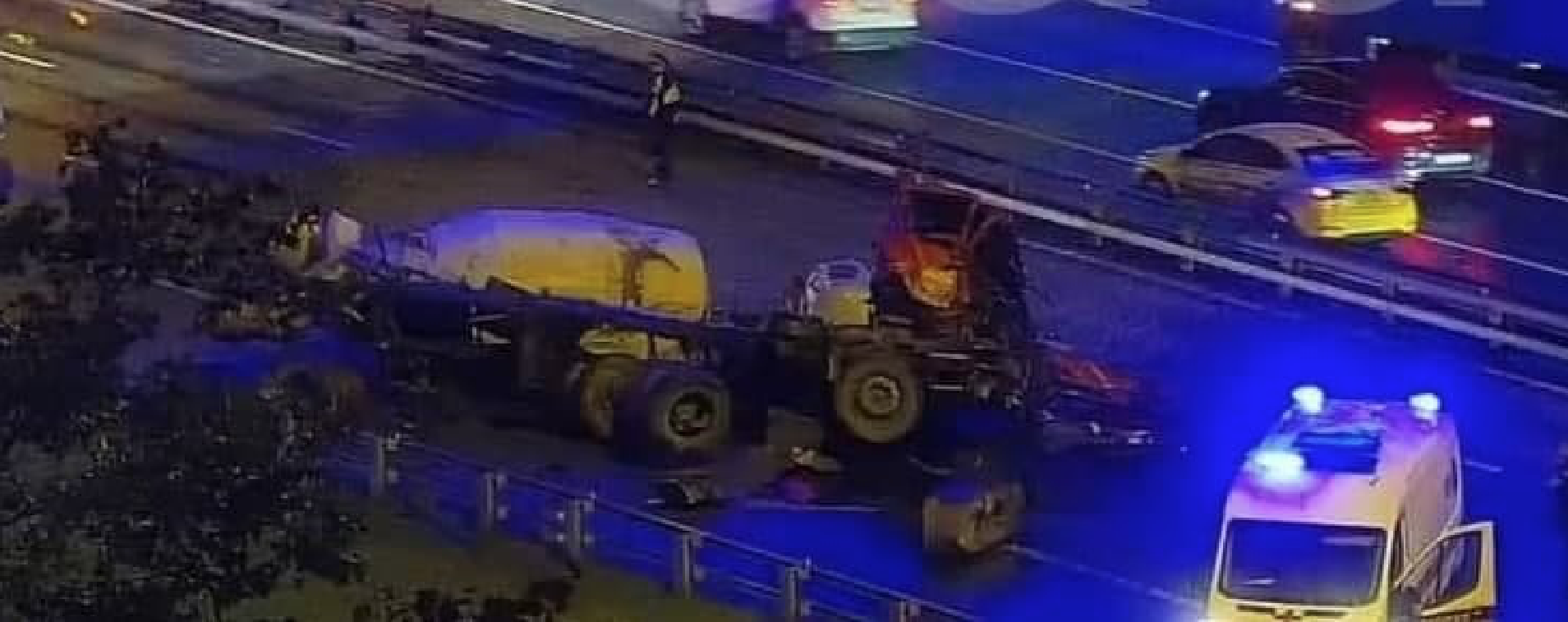 В Москве на Ленинградском проспекте грузовик упал с эстакады. ДТП произошло в районе пересечения с Третьим транспортным кольцом. Движение по Ленинградскому проспекту в сторону центра полностью перекрыто.