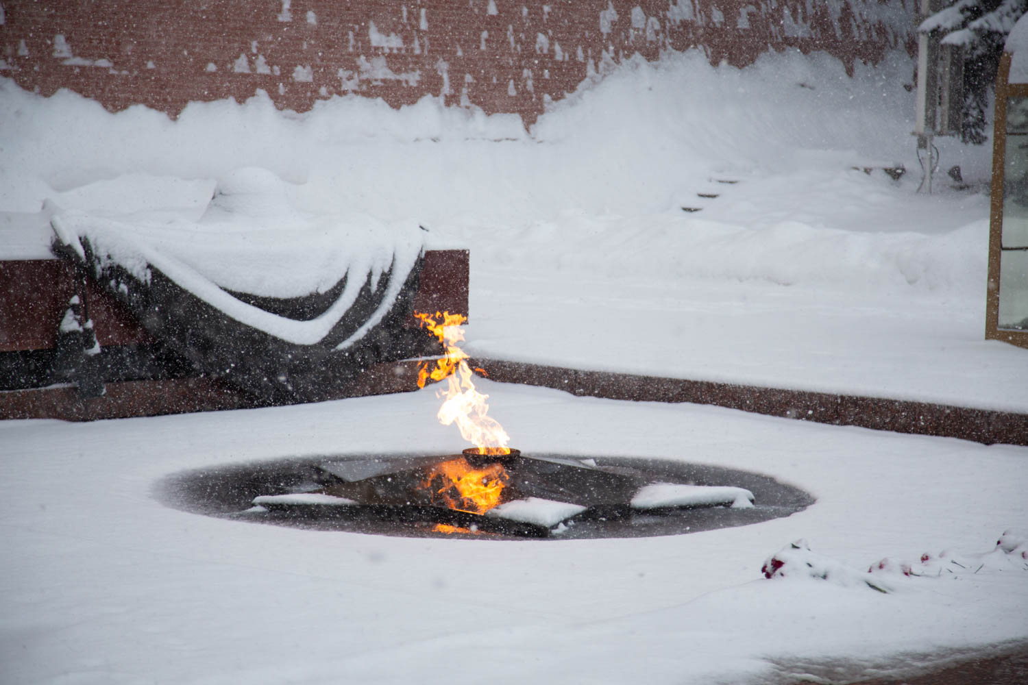 В Ленинградской области двое школьников засыпали снегом Вечный огонь, их задержали.
