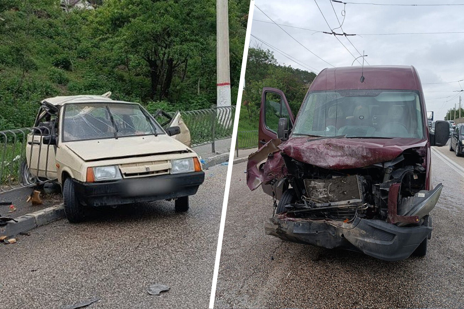 «Сегодня в Симферополе водитель автомобиля “ВАЗ-2108”, двигаясь со стороны села Пионерское в направлении Симферополя, допустил занос транспортного средства с последующим выездом на встречную полосу движения на правом закруглении дороги, где произошло столкновение с микроавтобусом Volkswagen Crafter», — сообщается в заявлении.