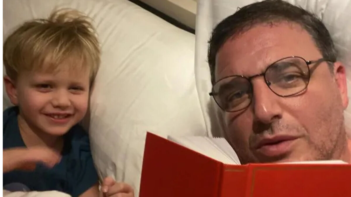 На снимке Максим Виторагн держит в руках книгу, а рядом с ним на подушке лежит сын. По словам актера, вместе с Платоном они читали «Обыкновенное чудо» Евгения Шварца. Виторган рассказал, что после прочтения этой книги его сын заинтересовался драматургией.