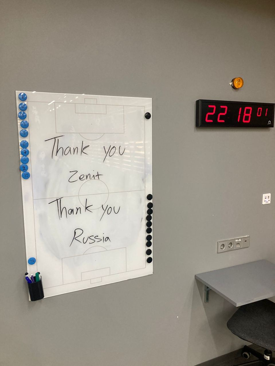 Футболисты иранского «Сепахана» оставили сообщение с благодарностью «Зениту» за гостеприимство во время организации и проведения товарищеского матча в Санкт-Петербурге. Свое послание они разместили на доске для тактического разбора в раздевалке стадиона «Газпром Арена».