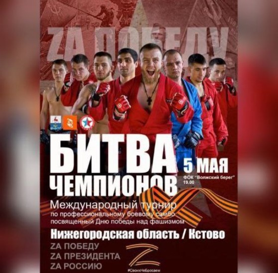 В городе Кстове Нижегородской области 5 мая состоится международный турнир по профессиональному боевому самбо «Битва Чемпионов», посвященный Дню Победы. Об этом сообщает «Нижегородская Правда».