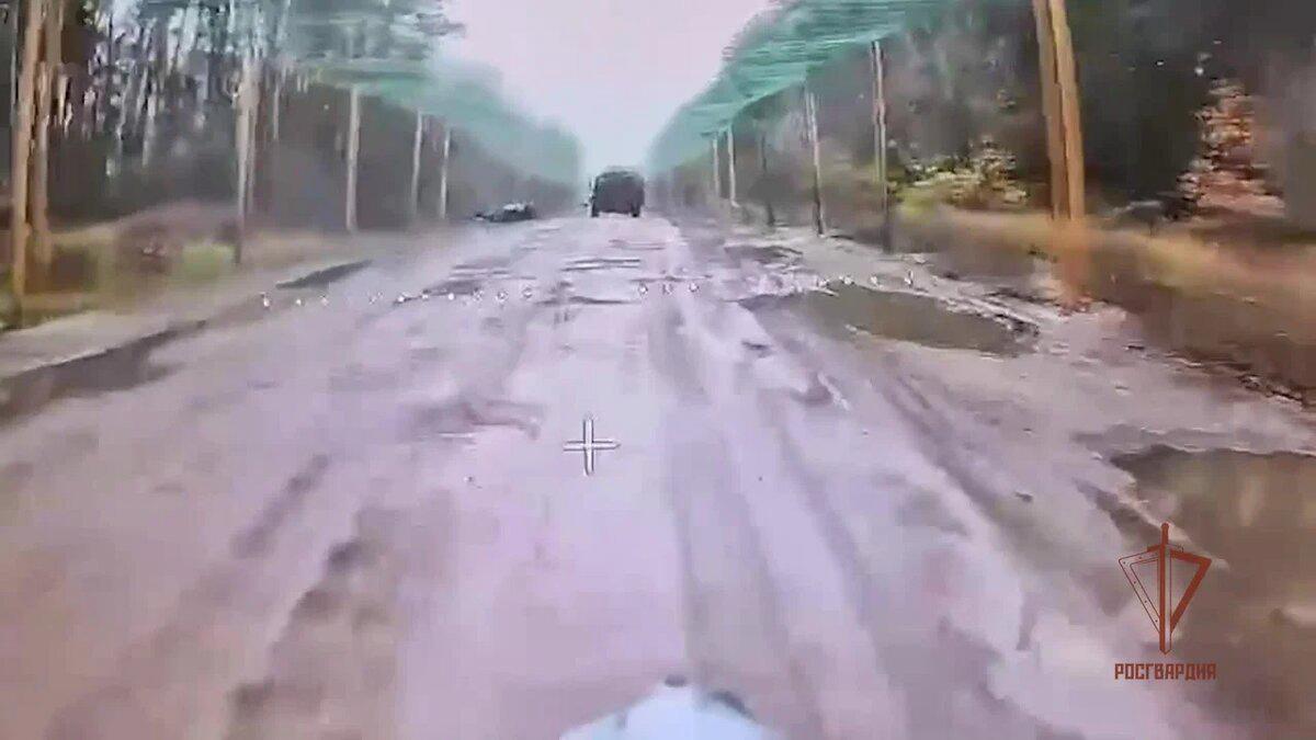Обнаруженная цель поражена ударами нескольких дронов-камикадзе с оптоволоконным наведением. С ювелирной точностью росгвардейцы сначала поразили двигатель автомобиля, а затем и сам боекомплект.